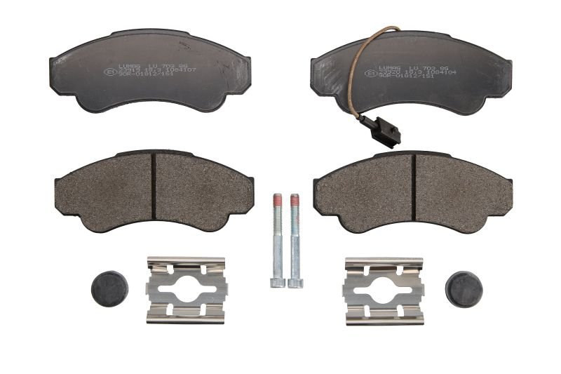 Brake pads set front (with extras; with integrated wear sensor), fits: CITROEN JUMPER I; FIAT DUCATO; PEUGEOT BOXER 2.0-2.8D 01.97-