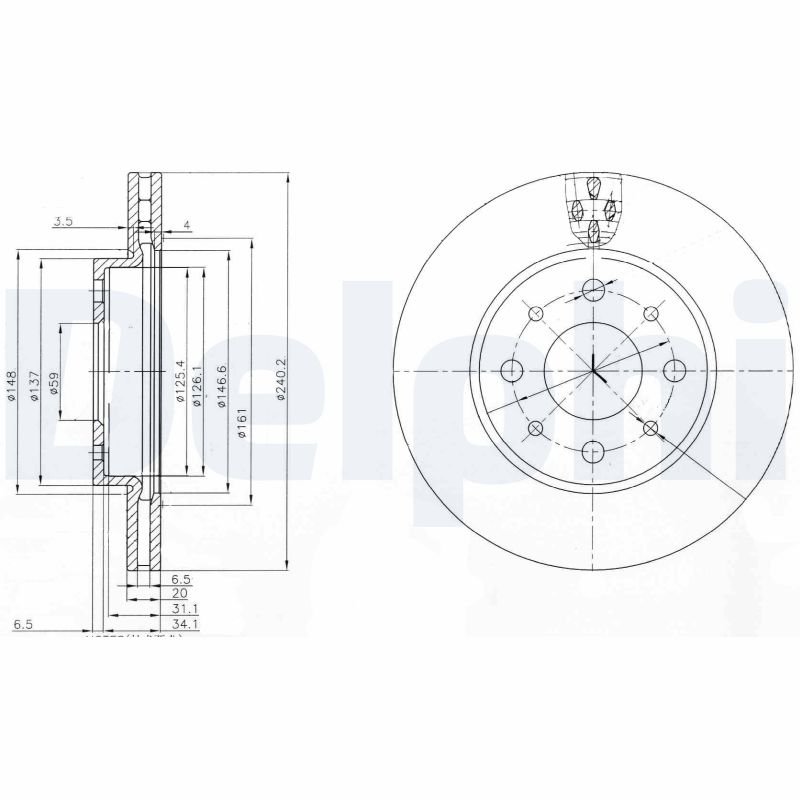 Brake disc set (2 pcs.) front L/R fits: FIAT 500, 500 C, PANDA, PANDA/HATCHBACK; FORD KA 0.9-1.4CNG 09.03-